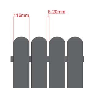 Vienpusės ir dvipusės vertikalių skardinių tvoralenčių tvoros.